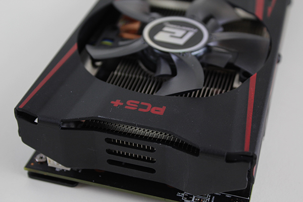 The dual slot cooler uses two 8.5cm fans and the double bladed fans look rather unusual. PowerColor claims the double-blade design can focus airflow into the center and increase airflow by up to 20 percent compared to traditional designs. The design is also supposed to prevent dust from depositing at the bottom.