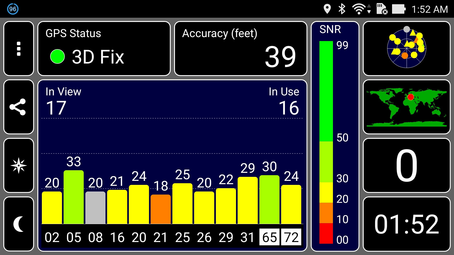 We had no trouble getting a GPS lock indoors, with average SNR and accuracy readings. GPS performance used to be an issue on non-Qualcomm phones, but luckily the latest Intel and MediaTek platforms tend to be just as good.