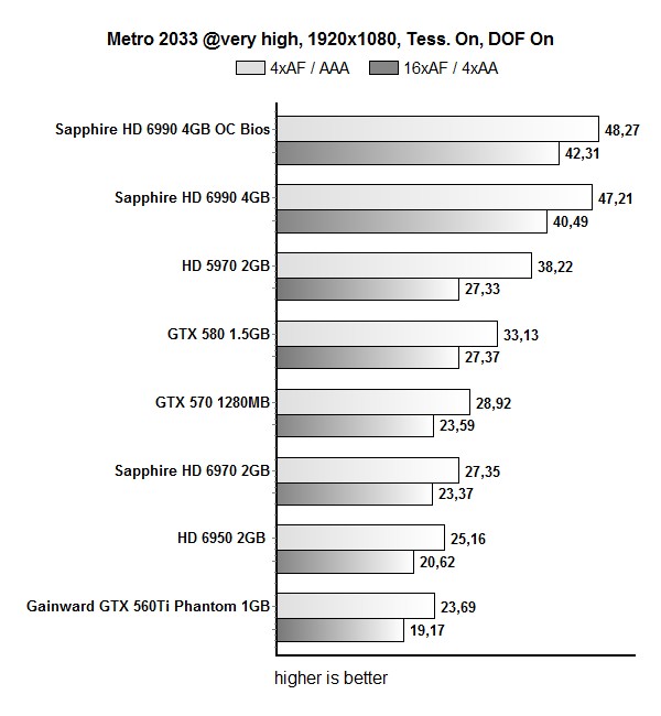 Radeon HD 6990 launched on March 7 and AMD improved its performance witt the new driver – Catalyst 11.4 early preview. On launch day, Sapphire's HD 6990 cost about €600 but you can find it today priced at around €550. As one would expect, performance is great, but what else to expect from two Caymans.