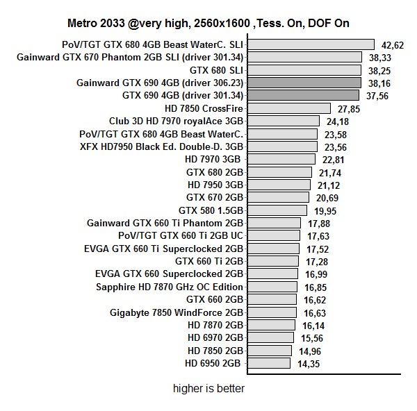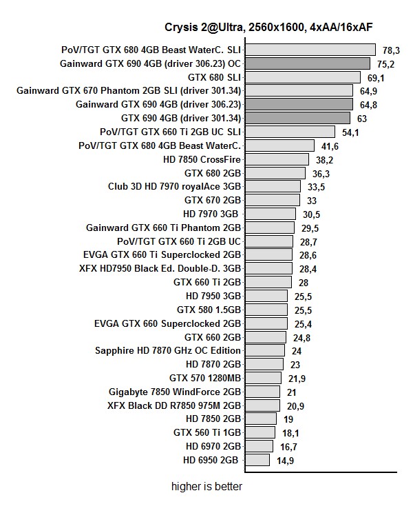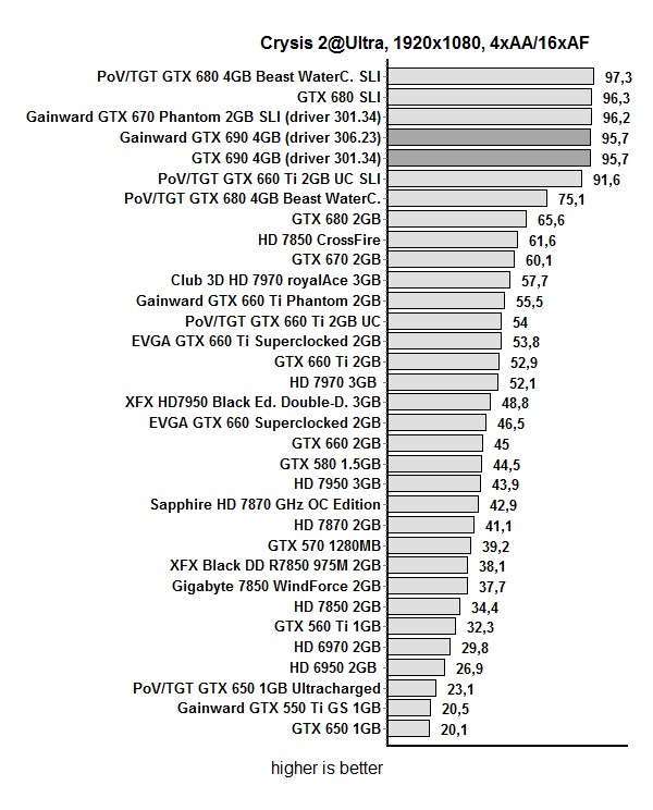 We’ve already tested the GTX 690, but the card performed slightly better today. However, it is not due to overclocking but rather due to the new drivers.
