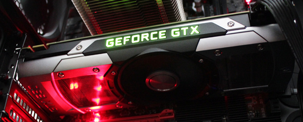 The cooler is two slots wide. On top of the cooler you’ll find “GEFORCE GTX” logo. The LED under the sign glows when the PC is ON.