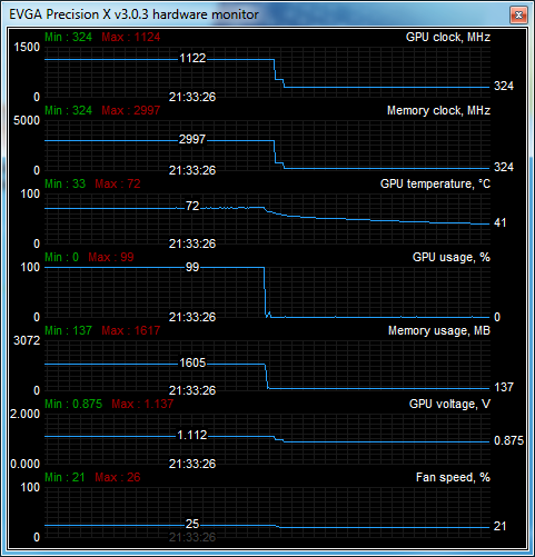 We used PrecisionX tool, which of course supports the GTX 650 Ti. To mark the launch, EVGA even made the new skin, picture below.