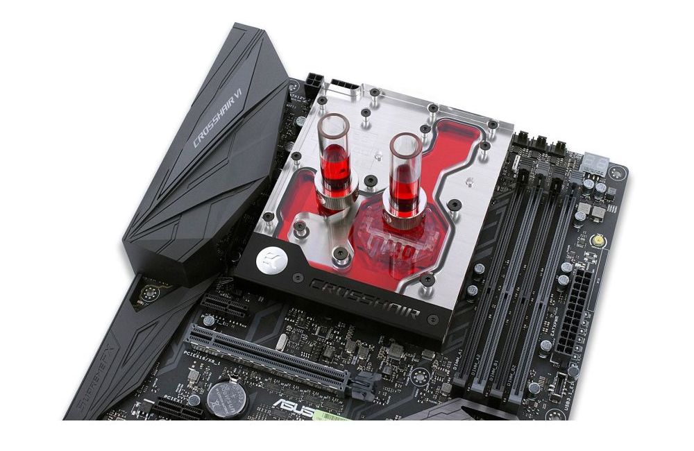 The EK-FB ASUS C6H RGB Monoblock, which supports Asus' quite popular ROG Crosshair VI Hero motherboard based on AMD's latest X370 chipset, is the company's first socket AM4 monoblock and it is based on an all-in-one solution, which means it cools and covers both the CPU as well as the VRM part of the motherboard. The block is made in cooperation with Asus and uses the EK-Supremacy EVO cooling engine.