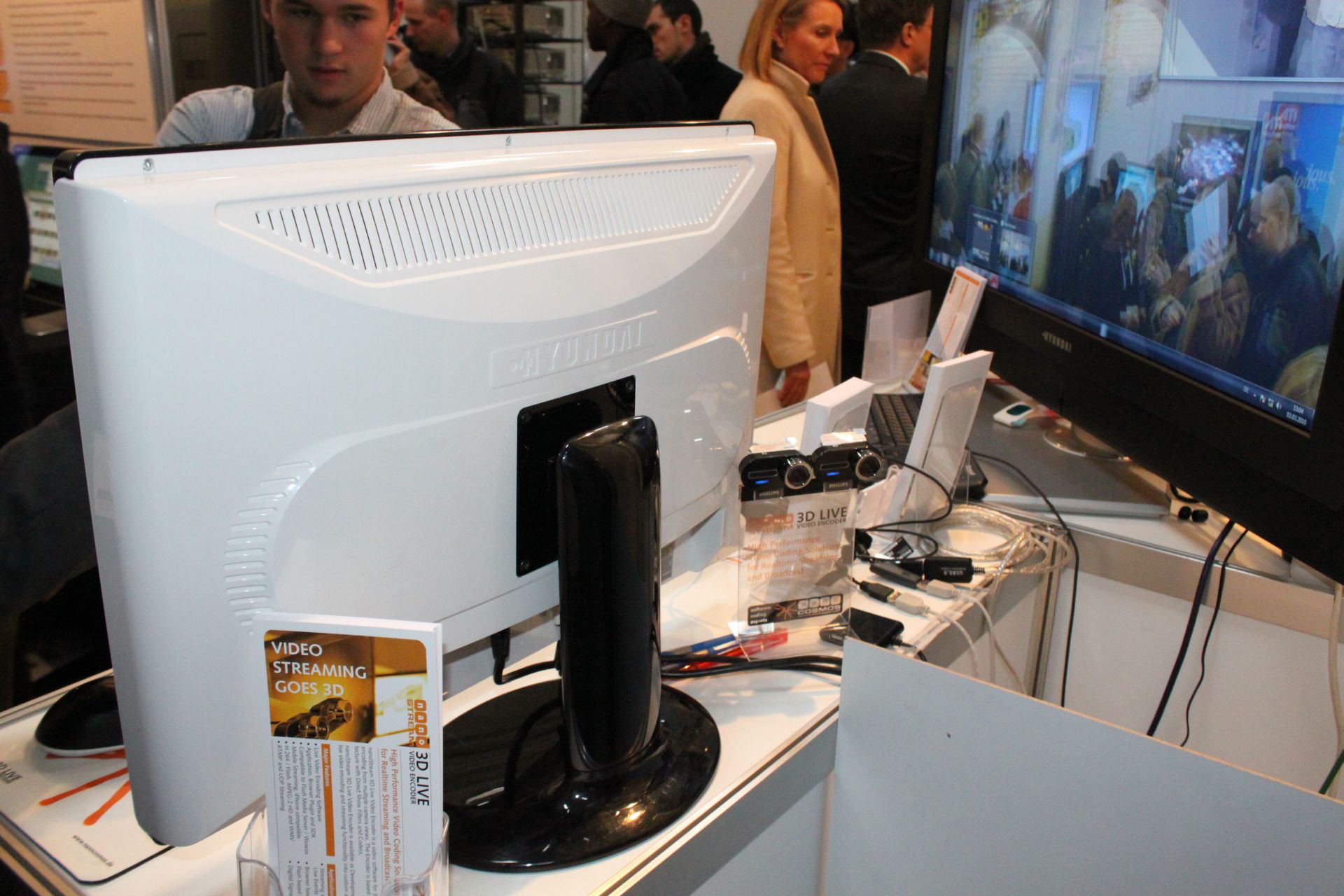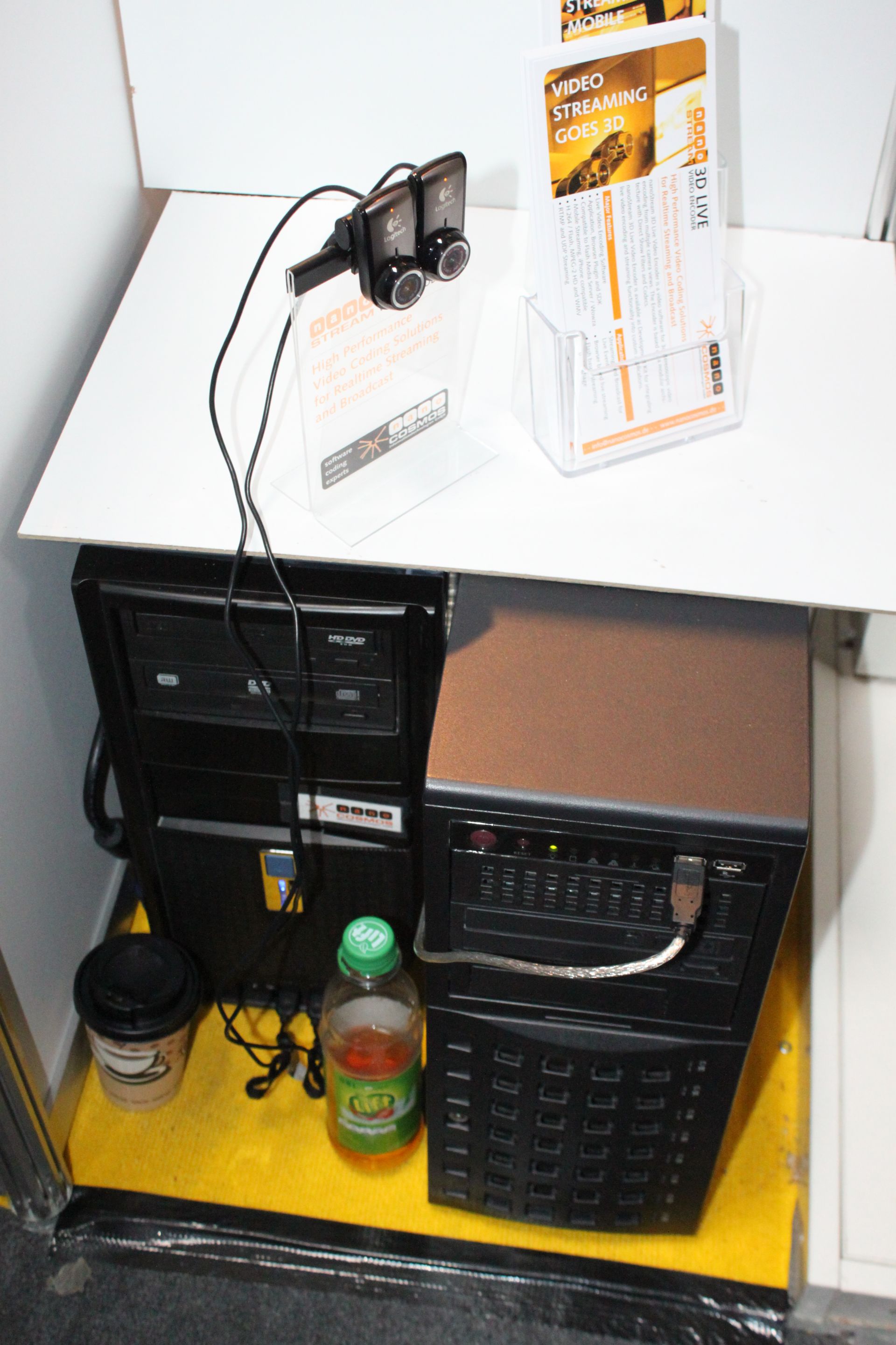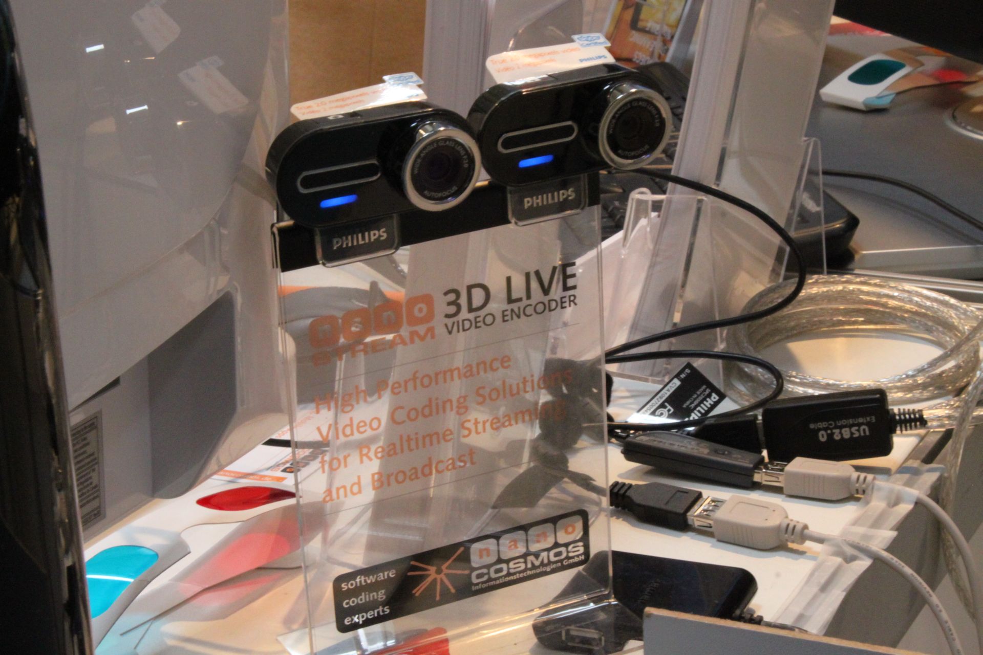 The number of 3D live video encoding solutions displayed here at Cebit is not quite what we’d call sky high, but the software is locked and loaded for use. The main problem persists – the lack of cheap 3D video capable displays for showing 3D content. Recording 3D video in high quality can be done using two full HD cameras, but if you are curious to see this technology in action, you can use two cheaper web cams, for example two Logitech or two Philips cameras as you can see from the following two pictures.
