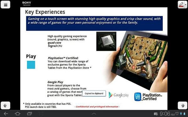 Among the things Sony kept are the display size of 9.4 inches and the same 1280x800 resolution. However, the new Xperia tablet will boast a quad core Tegra 3, a step up from the old dual-core Tegra 2 on the S.