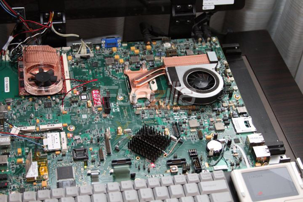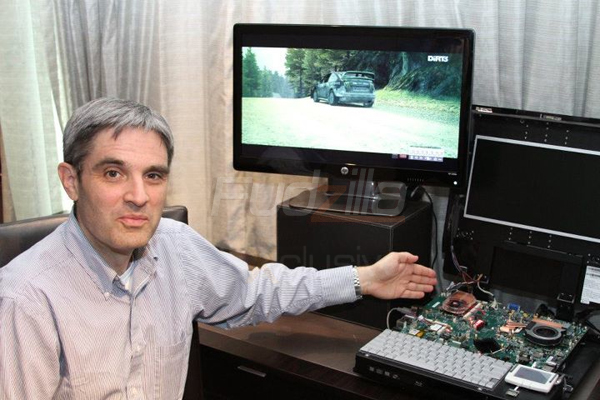 You can see behind David Cummings that the notebook reference design is running Dirt 3 on an external monitor. Enjoy what seems to be one of the first pictures of AMD's 28nm graphics, a glance into the future if you like.