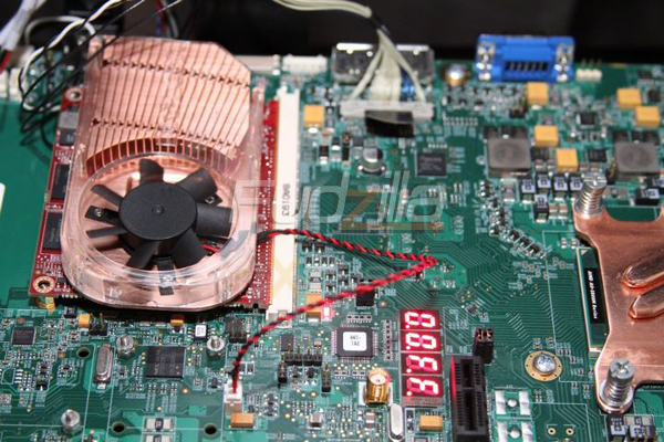 The red card below the fan is MXM format, which is quite usual for the discrete notebook graphics and it has a coper heatsink covered with an average sized fan.We assume that this is a performance card, as the entry level 28nm should be ok even without a fan, or at least with much smaller fan.