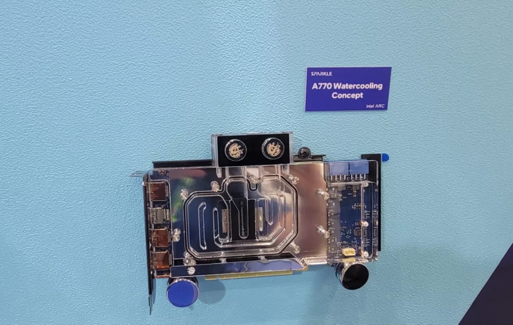 As pictured by Tomshardware on the show floor, Sparkle brought its Elf, Orc, and Titan OC Edition graphics cards, industrial low-profile cards, and a liquid-cooled Arc A770 concept. Sparkle is obviously serious about joining Acer, ASRock, GUNNIR, and others with Intel Arc graphics cards.