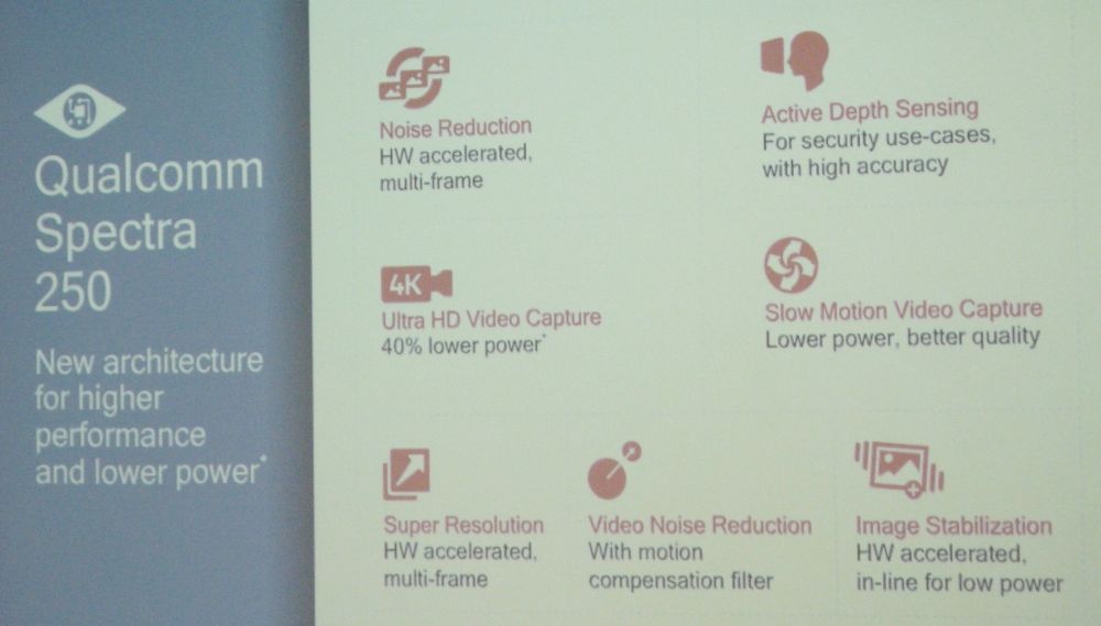 The Qualcomm Spectra 250 image sensor processor (ISP), which will bring support for 20-megapixel dual ISP or a 32-megapixel single ISP. It will support UHD/4K video capture at 30fps and, thanks to the new AI engine, brings plenty of enhancement unavailable for the previous generation.