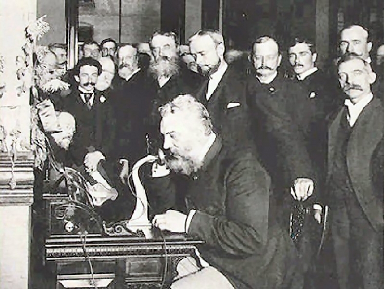 [Photo: Alexander Graham Bell calls Chicago from New York on his new telephonic device in 1892. Picture in the public domain, Library of Congress. Golly, how times have changed.]