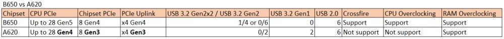 AMD A620 chipset vs B650. CPU overclocking is not supported on A620. pic.twitter.com/LT4TKnJM3m