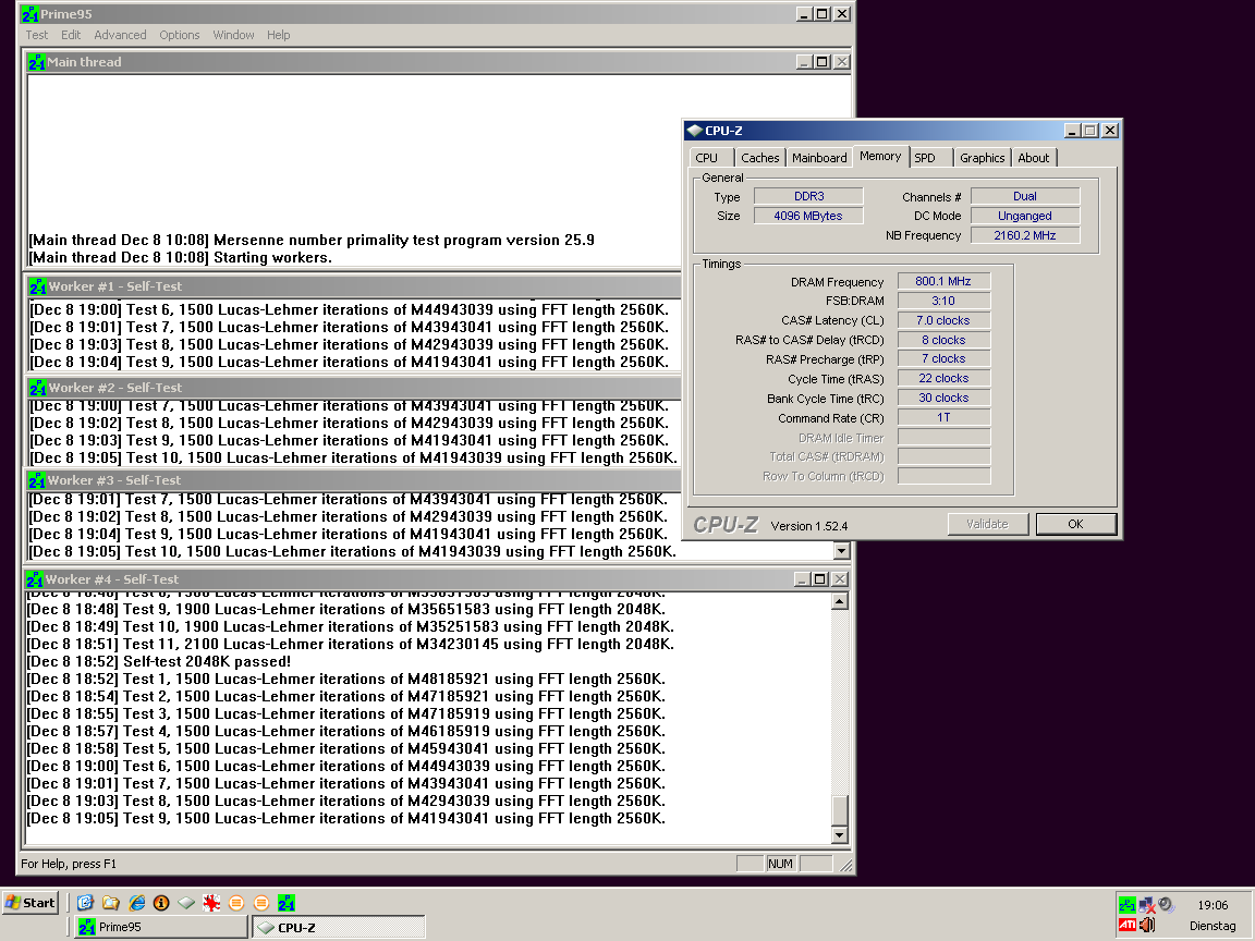 Übertakter setzen entweder auf niedrigere Latenzen oder höhere Geschwindigkeit. Wir haben uns für die besseren Latenzen entschieden, weil wir wissen, daß diese in den meisten Fällen performanter sind. Mit 1.42V schafften wir auf beiden Plattformen die 7-8-7 Latenzen allerdings mit einer Command Rate von 1T.