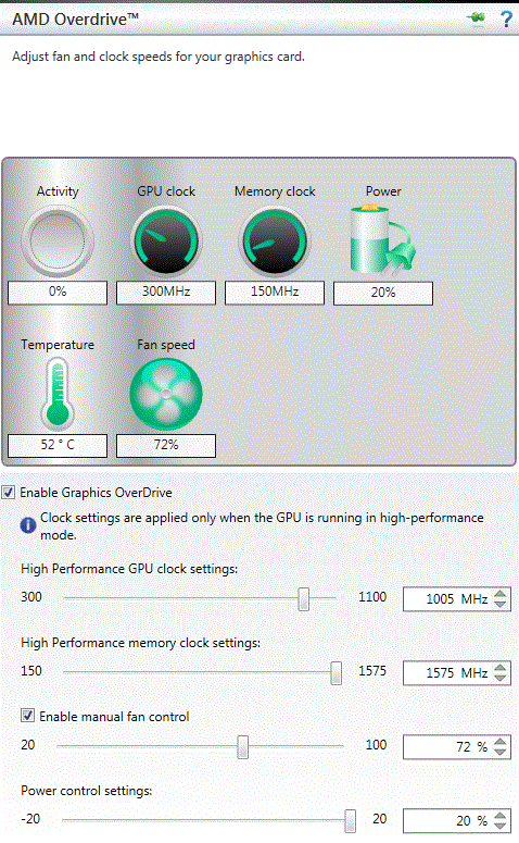 XFX Radeon HD 7950 Black Edition is a factory overclocked graphics card. The GPU runs at 900MHz and the memory at 1375MHz (5500MHz effectively). Note that the standard HD 7950 card’s GPU runs at 800MHz and the memory at 1250MHz (5000MHz effectively). ATI Overdrive support GPU overclocking on the HD 7950 Black Edition card.