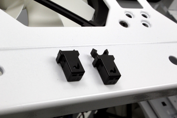 Just like the other three fans in Switch 810, the fan on the front panel uses a standard three-pin fan power connector. The power hub enables for powering the fans via a single peripheral Molex power connector from the PSU. The power hub will take a total of seven fans.