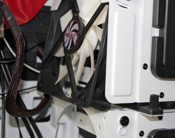 We had some problems while angling this fan since it is set a bit too low and leans on the bottom HDD cage. The picture below shows that the fan stretches outside of its frame on the HDD cage. NZTX said that the sample we received is a pre-production one and that this will not be the case with retail versions.