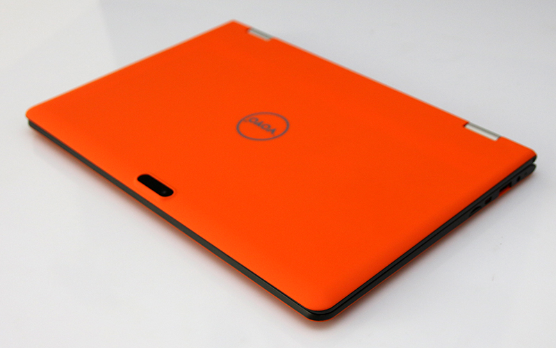 Although this is not a ruggedized device, we must note we liked the soft rubbery finish on the lid and base. The orange rubber has a soft feel and we appreciate the good grip it provides. The orange and black colour combination looks great, but it would have looked even better had Lenovo not used it on the Yoga. Nevertheless, so this device turned many heads and got a lot of attention from our colleagues during the past couple of weeks. Some people liked the bright colour, while others were impressed by the thin, compact design.